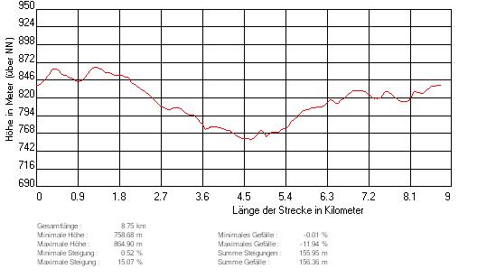 Charakteristik: Verlängerung der 6km-Skatingloipe, die erst bei besseren Schneeverhältnissen gespurt wird. Der leicht wellige Charakter gilt auch für die Verlängerungsschleife