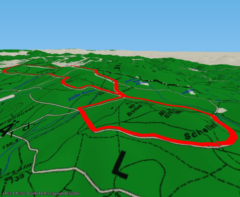 Route: Vom Start/Ziel-Gelände geht es kurz nach links und dann gleich rechts den Berg hoch. Alle Abzweigungen liegen lassend geht es immer auf der freien Trasse der Gasleitung entlang. Am Gabelungspunkt diesmal halblinks weiter. Alle Abzweigungen liegen lassend kommt man nach 3 km wieder an den Gabelungspunkt. Von dort nun links zurück zum Start/Ziel-Gelände.