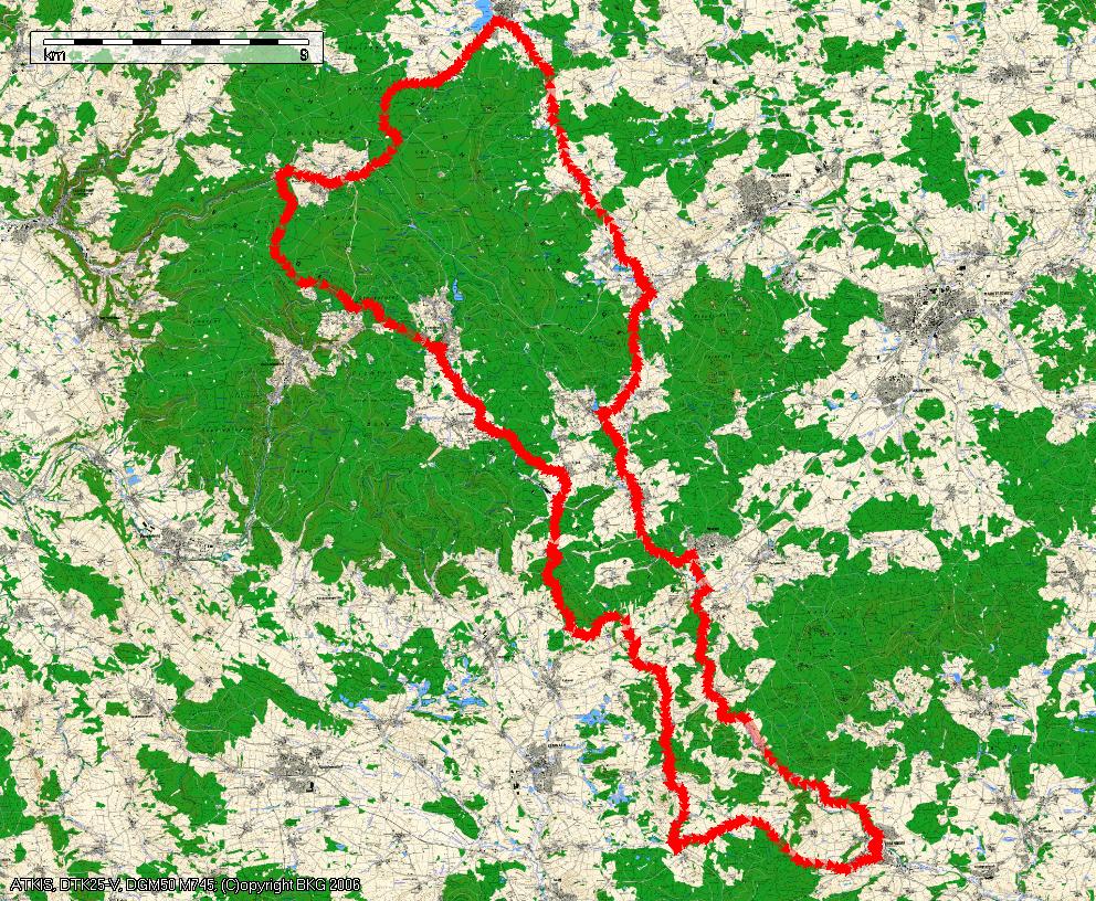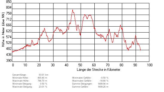 Route: Vom Parkplatz rechts auf die St2181. Dieser lange folgen. In Höhe Lochau links hoch nach Neusorg. Nach der Bahn rechts weiter in Richtung Ebnath. Weiter auf der TIR10 (wird zur WUN10) nach Nagel. Dort rechts auf die St2665 und über den Wurmlohpass nach Tröstau. Hier quert man die B303 (die man vermeiden sollte) und fährt weiter nach Leupoldsdorf (Richtung Fußballplatz abbiegen). 1xlinks und 1xrechts abbiegen und man gelangt auf die WUN7. Dieser folgt man bis zur Einmündung auf die St2180. Nach Weißenstadt biegt links die WUN1 ab. Dieser folgt man (wird zur BT13) bis Bichofsgrün. Nach der Ortsdurchfährt (böser Pflasterbelag) fährt man bergab zur B303. Auf diese links einbiegen (Vorsicht !) und nach 200m gleich wieder links auf die BT4. Dieser nun durch Fleckl bis an deren “Einmündung” auf die St2181 folgen. Halb-links weiter aud die Staatsstraße. In Fichtelberg rechts abbiegen und immer geradeaus bis Brand. Hier biegt rechts die St2665 ab. Weiter über die “Alm” in Richtung Kulmain. In Höhe Aign links auf die TIR21 abbiegen. In Höhe Oberwappenöst rechts zur St2177. Dieser rechts ein kurzes Stück folgen und hinter dem Asphaltwerk links in Richtung Erdenweiß. Am Armesberg vorbei zur Abzweigung auf die TIR8. Hier rechts bergab nach Waldeck. Dort durch den ganzen Ort immer auf der Hauptstraße bleiben und am Friedhof geradeaus, bevor man rechts über die Lettenmühle nach Oberneumühle kommt. Hier nun links auf der TIR28 durch Atzmannsberg bis zur Einmündung auf die B299 und über den Hessenreuther Berg zurück nach Erbendorf.