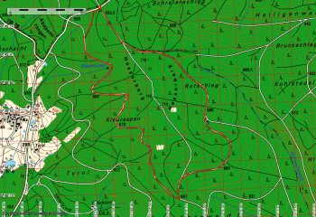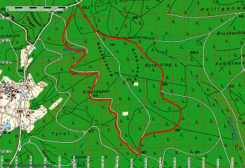 Man kann dazu beim GPS-Pfad exemplarisch erkennen, wie die Routenaufzeichnung immer ungenauer wird, je länger der Weg durch den Buchenwald führt. Ist der Hinweg noch akkurat getroffen, liegt die Diskrepanz am Rückweg bei bis zu 50 Meter. Das ist so erheblich, daß es als Vorlage für knifflig zu findende Routen im Unterholz nicht mehr ausreicht, zumal ja dann der GPS-Empfänger noch einmal die gleiche Toleranz produzieren kann, wodurch die Ungenauigkeiten dann bis zu 100m erreichen kann.