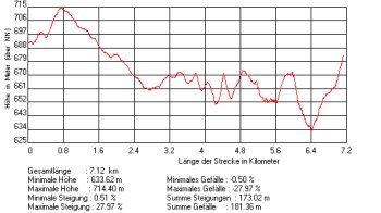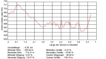 Man kann schön erkennen, wie das 50-Meter-Modell der GPS-Karten-Software ständig Steigungen und Gefälle als Artefakte generiert, wenn der flache Weg in die Nähe von Gitterpunkten kommt. Auch wenn die Höhenmessung mit dem HAC4 durchaus auch seine Tücken hat, ist er dem GPS-basierten Methoden um Längen voraus. Je flacher der Weg und je bergiger die Region durch die er führt, desto schlechter wird das Ergebnis.